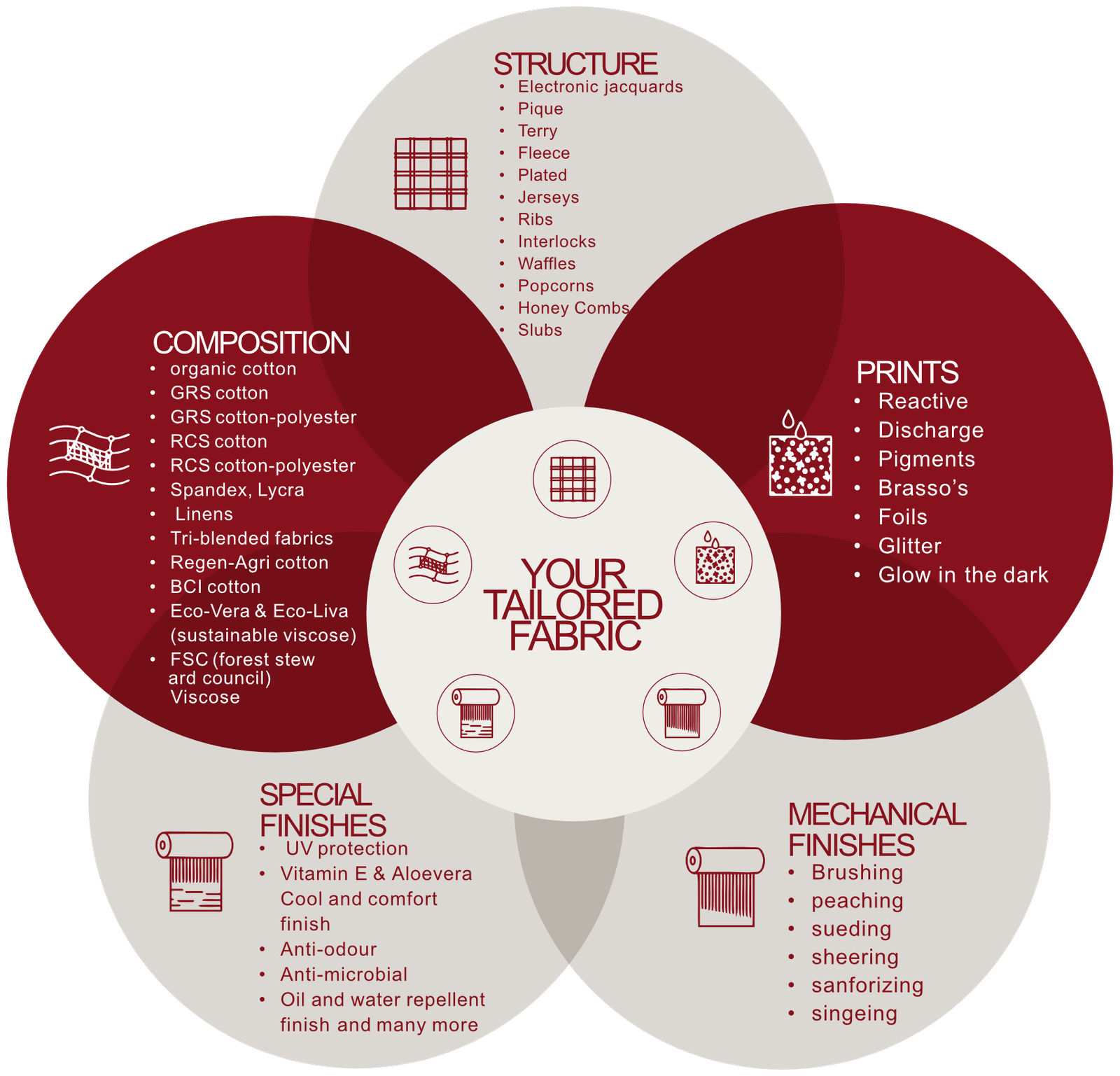 The fabric is physically tested for various parameters like GSM value, shrinkage post washing and bursting strength. The fabric is inspected thoroughly using international four point system protocol, failing which the fabric is further inspected into.